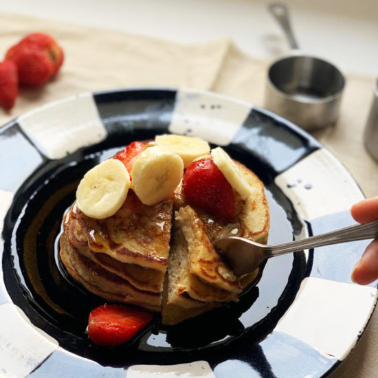There is just something about making pancakes on a lazy Sunday morning. It is our standard breakfast at the end of every weekend. I keep changing them around a little…
