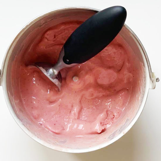 Sugarless Strawberry Banana Frozen Yogurt (3 Ingredients)